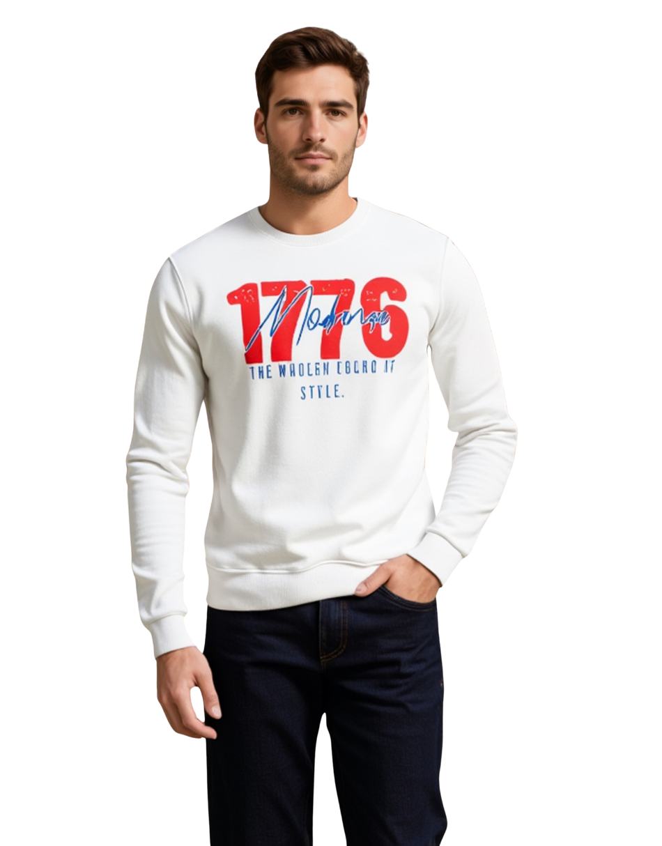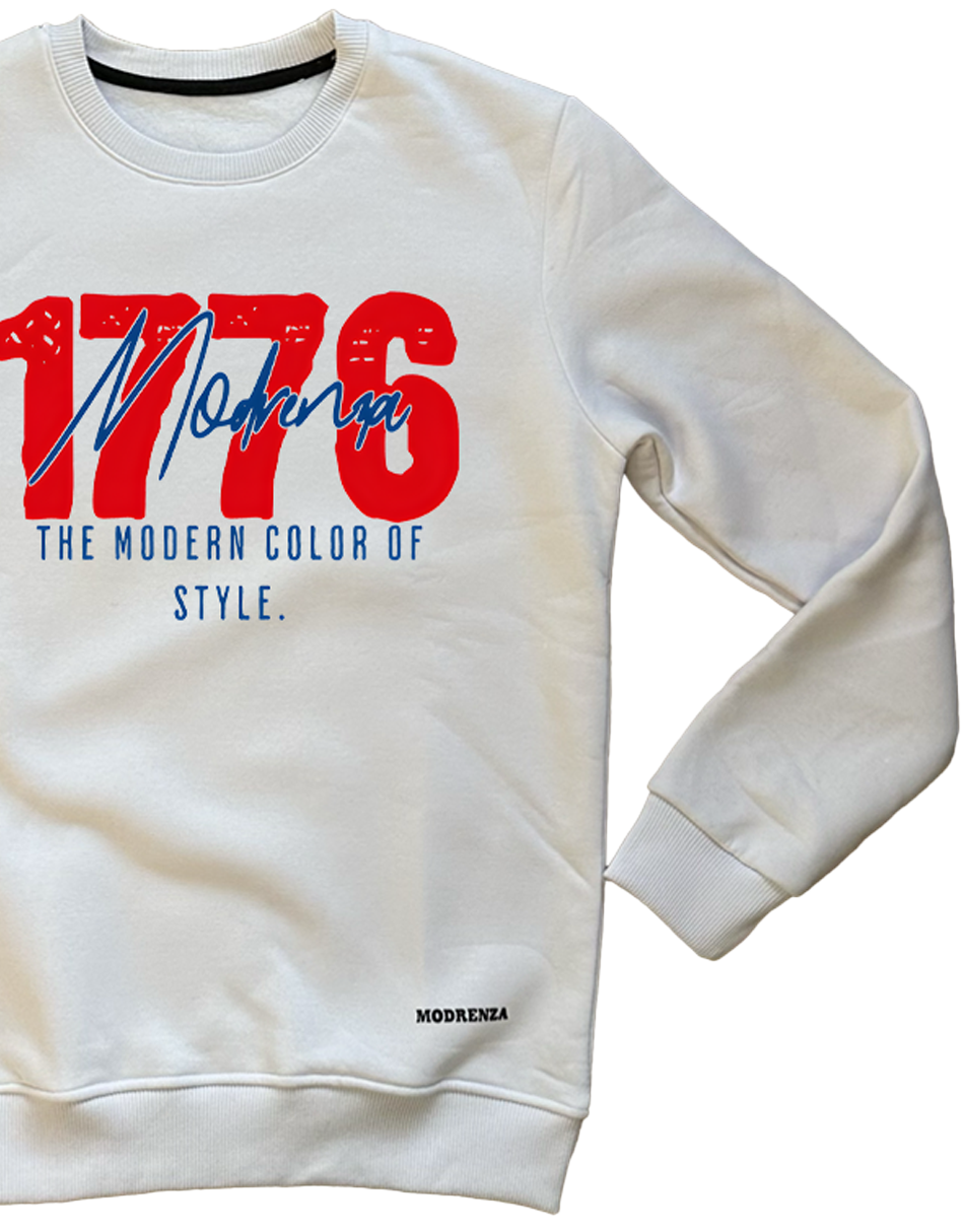 Modrenza baskılı beyaz sweatshirt, 3 iplik şardonlu kumaşı sayesinde sıcak, yumuşak ve konforlu bir kullanım sunar. Günlük stil için ideal, modern ve dikkat çekici bir parçadır.