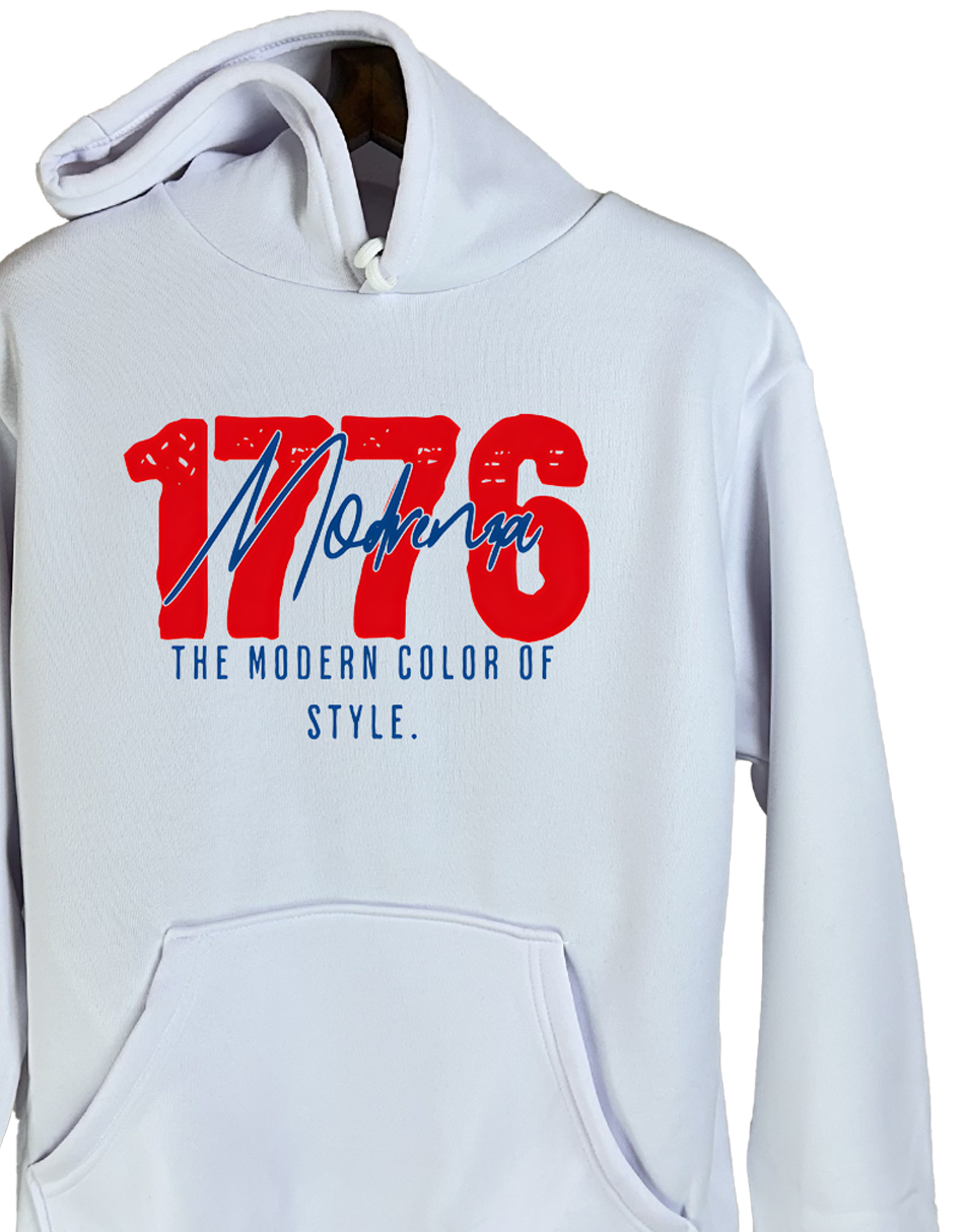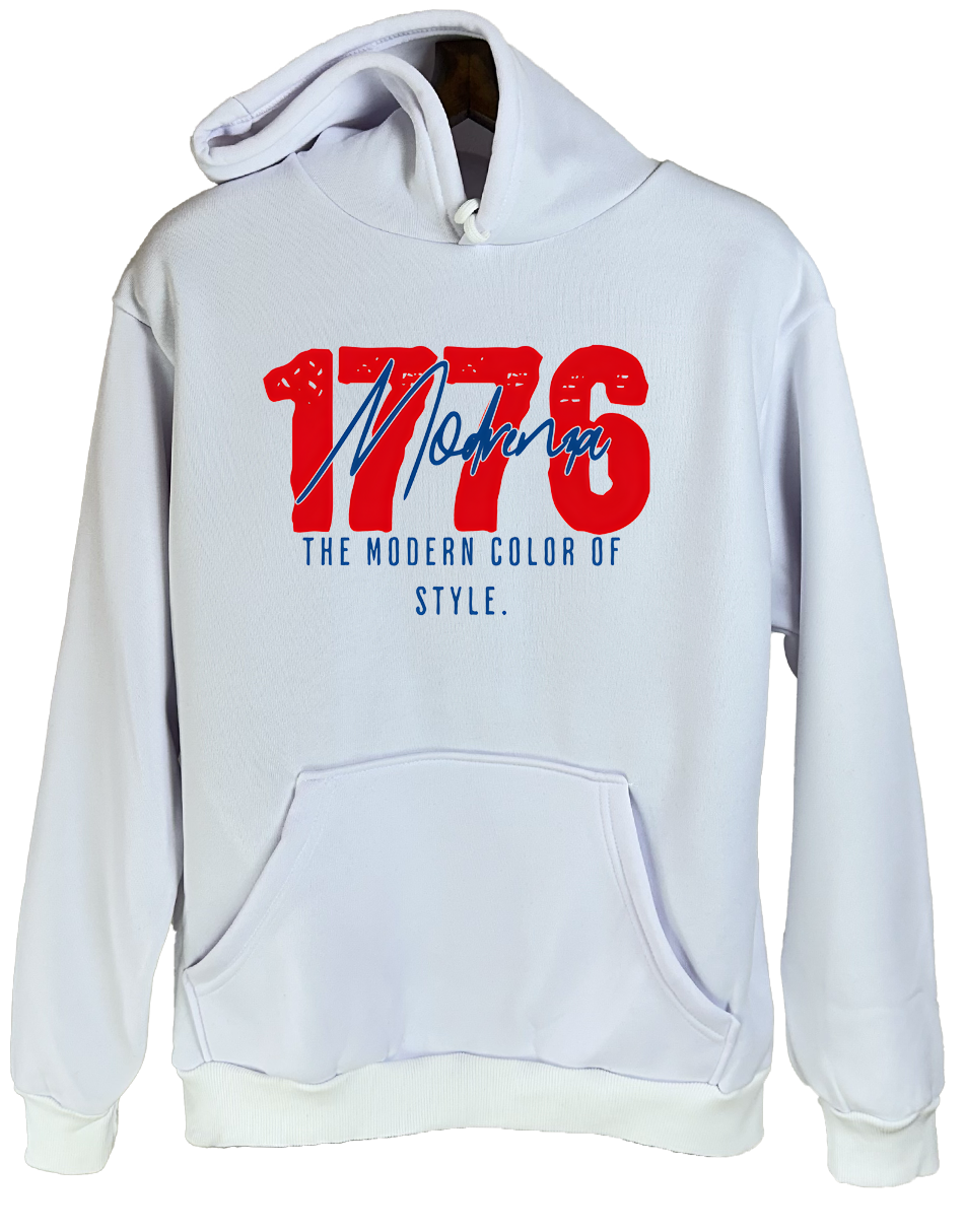 Modrenza baskılı kapüşonlu beyaz sweatshirt, 3 iplik şardonlu kumaşı sayesinde sıcak, yumuşak ve konforlu bir kullanım sunar. Günlük stil için ideal, modern ve dikkat çekici bir parçadır.