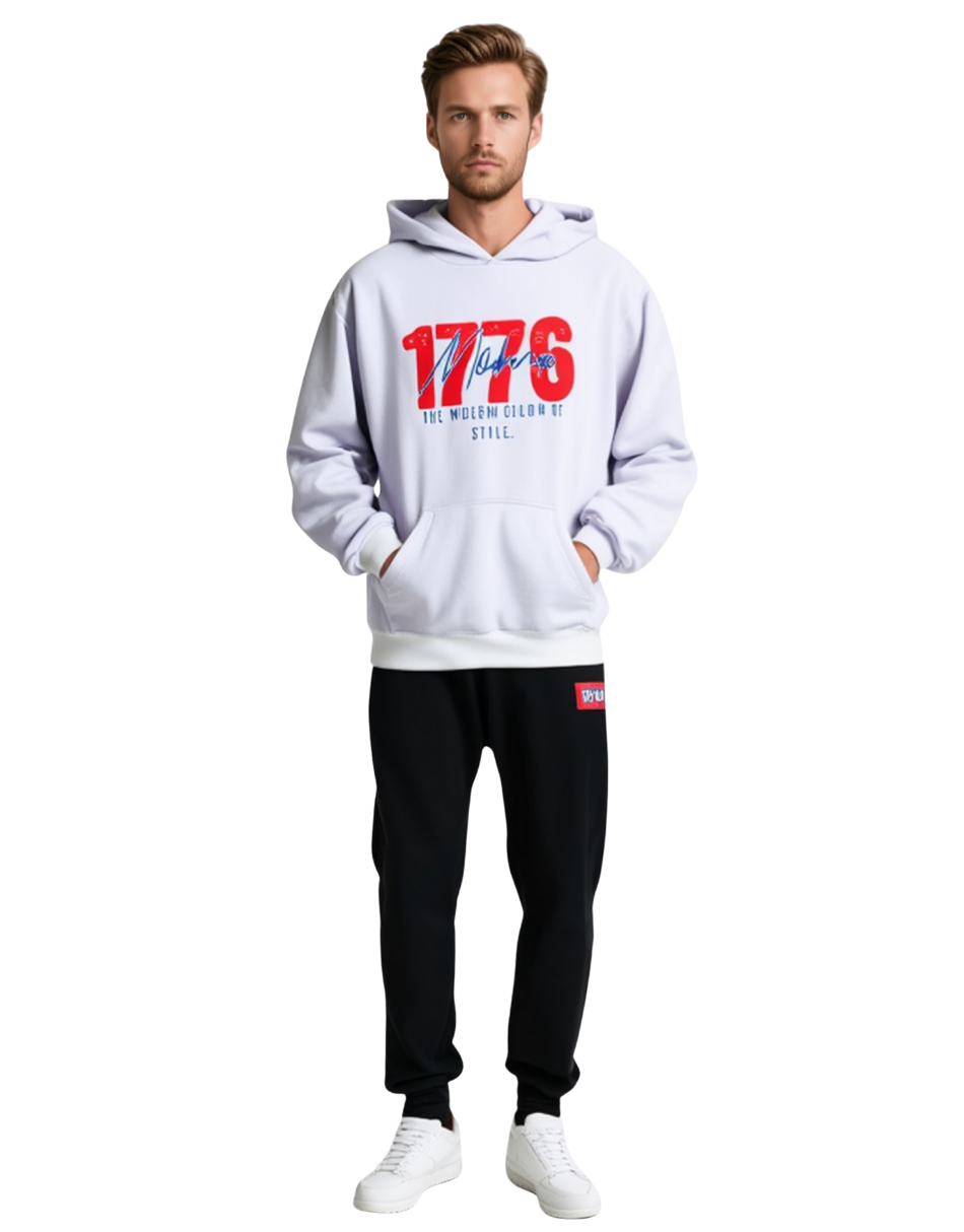 Modrenza kalitesiyle üretilen bu baskılı kapüşonlu beyaz sweatshirt, soğuk havalarda maksimum konfor sağlamak üzere 3 iplik şardonlu kumaş kullanılarak tasarlanmıştır. Kalın ve tok dokusu ile sıcak tutar, yumuşak iç yüzeyi gün boyu rahatlık sunar.
