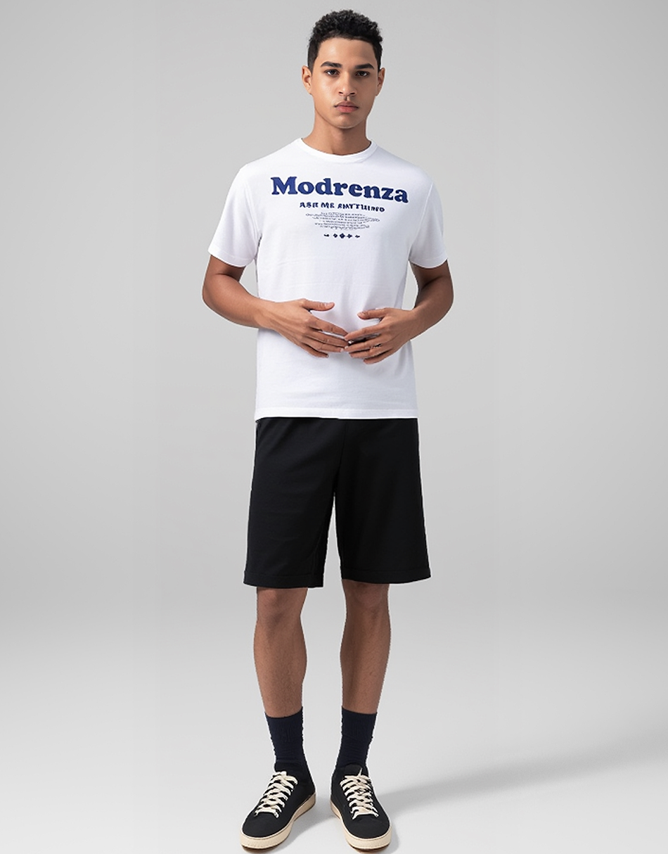 Modrenza Baskılı Sıfır Yaka Tişört – Minimalist çizgiye yüksek baskı kalitesiyle güçlü bir dokunuş.