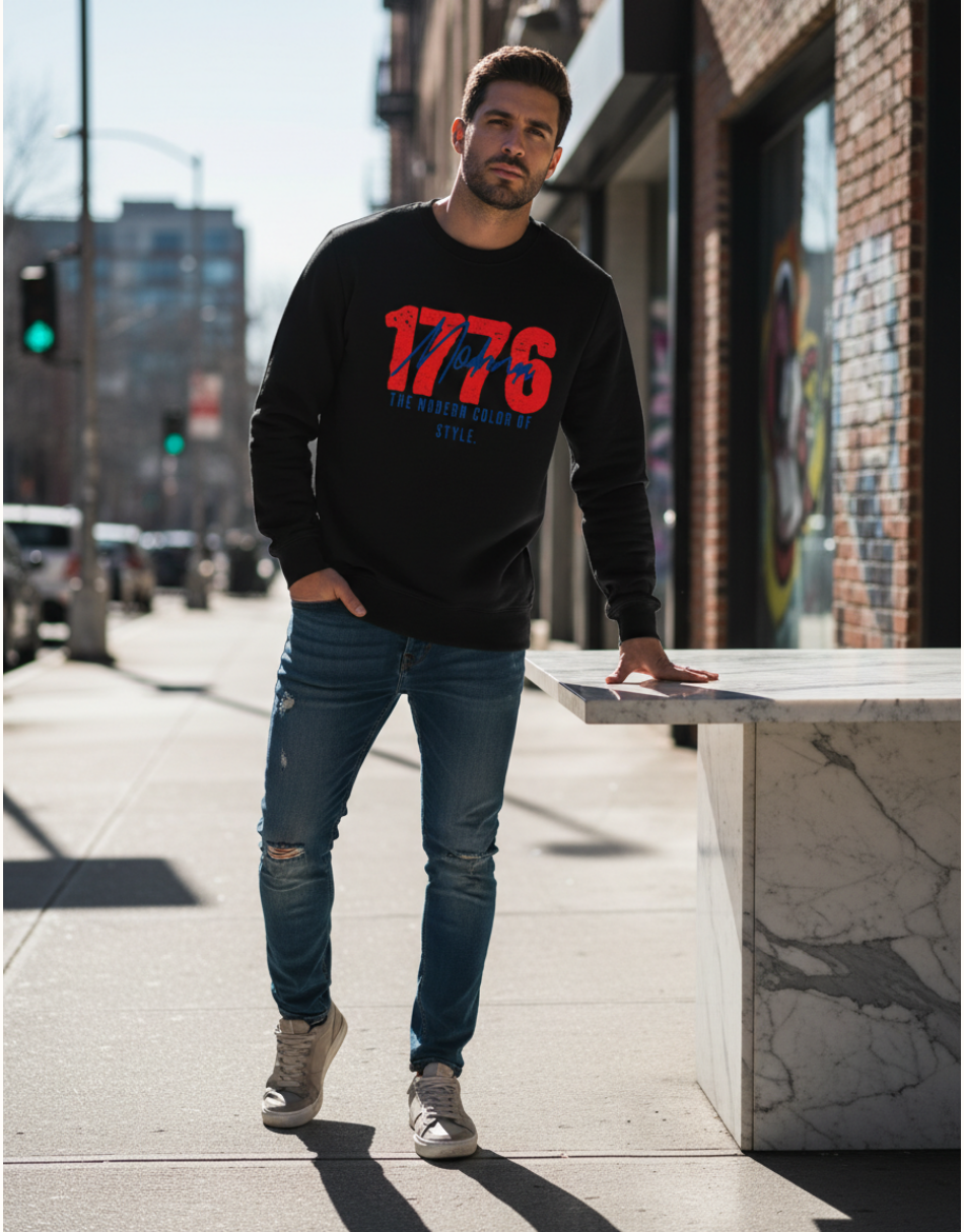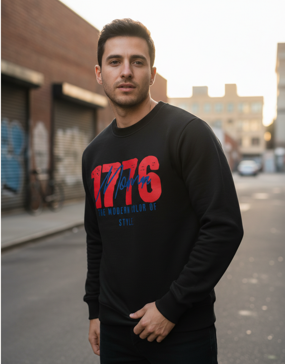Modrenza baskılı siyah sweatshirt, 3 iplik şardonlu kumaşı sayesinde sıcak, yumuşak ve konforlu bir kullanım sunar. Günlük stil için ideal, modern ve dikkat çekici bir parçadır.