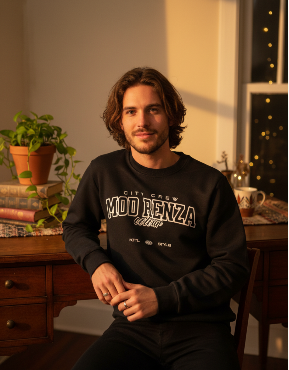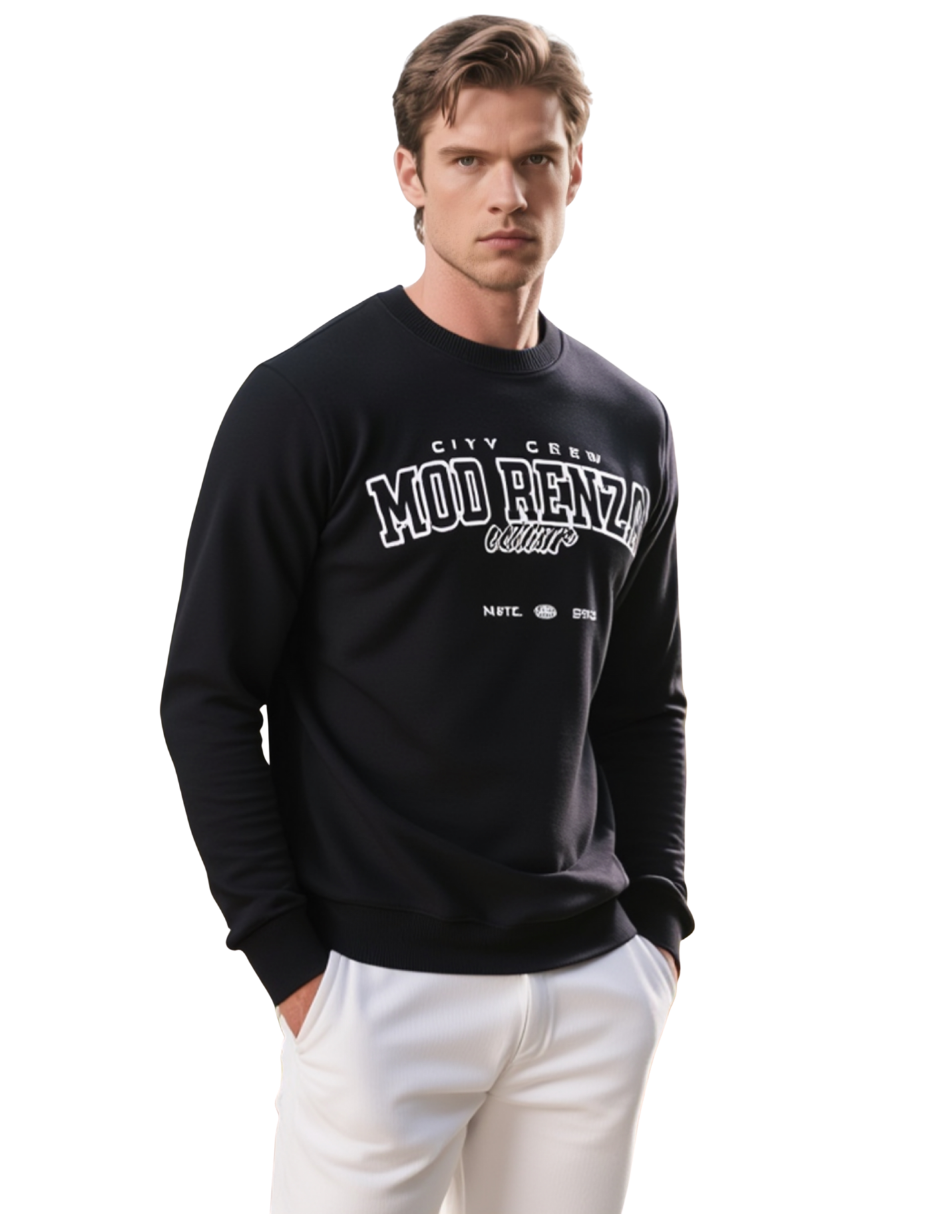 Modrenza baskılı siyah sweatshirt, 3 iplik şardonlu kumaşı sayesinde sıcak, yumuşak ve konforlu bir kullanım sunar. Günlük stil için ideal, modern ve dikkat çekici bir parçadır.