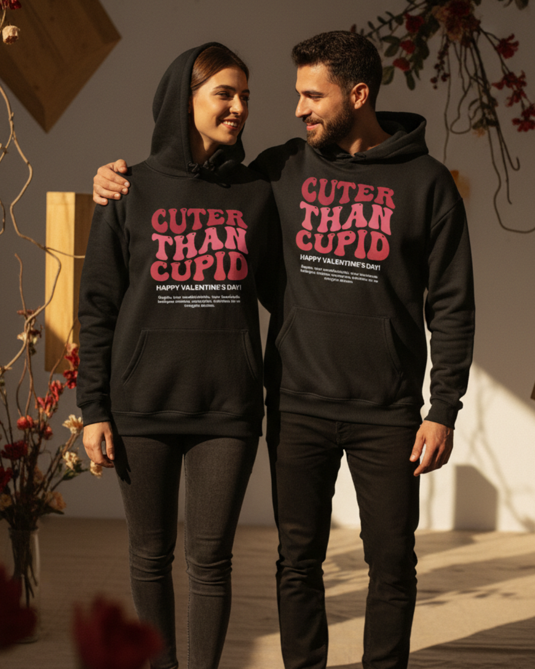 Sevgililer Günü’ne özel tasarlanan kapşonlu sweatshirt, %100 pamuk kumaşı ve DTG baskı kalitesiyle konforu ve romantik tarzı bir araya getirir. Günlük kullanıma uygun, anlamlı bir hediye seçeneği.